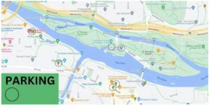 Vehicle parking is available in East Village, with limited spaces in the lot at the east end of St. Patrick’s Island. This lot can be accessed via Baines Bridge from Memorial Drive eastbound.